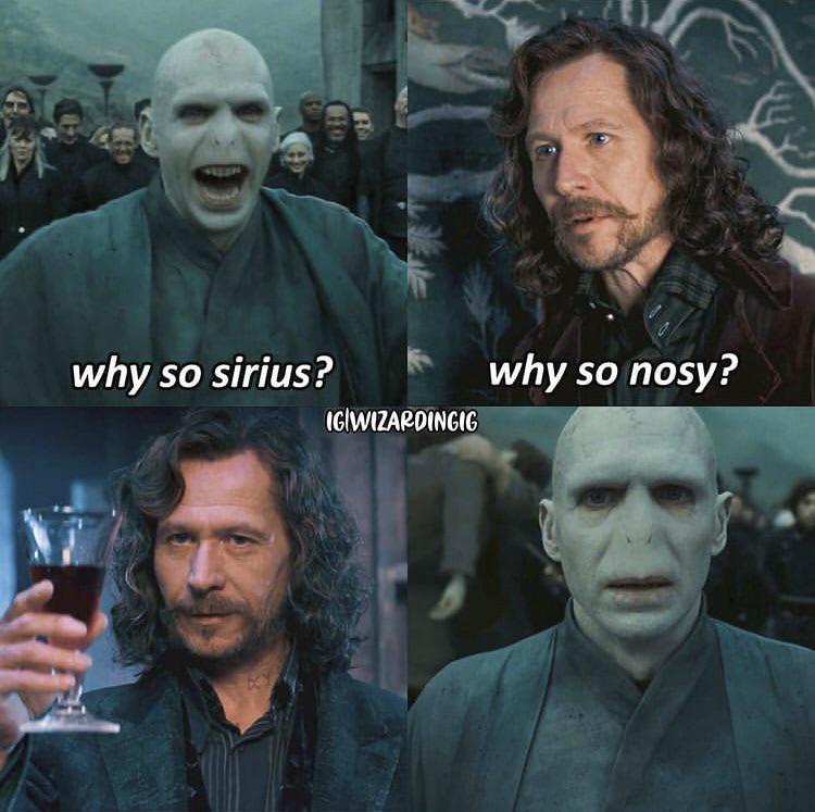 Harry potter memes.#1 voldemort roasted by sirius (still not one nose).