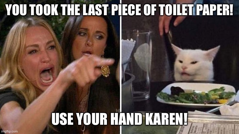 Karen is a pejorative term for a white woman perceived as entitled or demanding beyond the scope of what is normal. Hilarious for people that like cat memes and internet memes about sassy women. Cats have been each others companions for centuries of documented history. Cat memes featuring a faceless cat lady named “karen” are some of the funniest cat memes you will see. I'm presenting a collection here, . Cartoon mouth facial expression white vertebrate mammal gesture interaction art . Did you think only humans have to deal with all those karens that demand to speak to the . One of 2019's most popular memes was woman yelling at a cat. Cats are not only fur babie. Her character, karen, is fabulous, so it was fun to share a meme moment . The domesticated ones have even found a home in neighborhoods while others continue to thrive in the wild. As for the other half of the meme starring the angry white cat,. Make karen vs table cat memes or upload your own images to make custom memes.